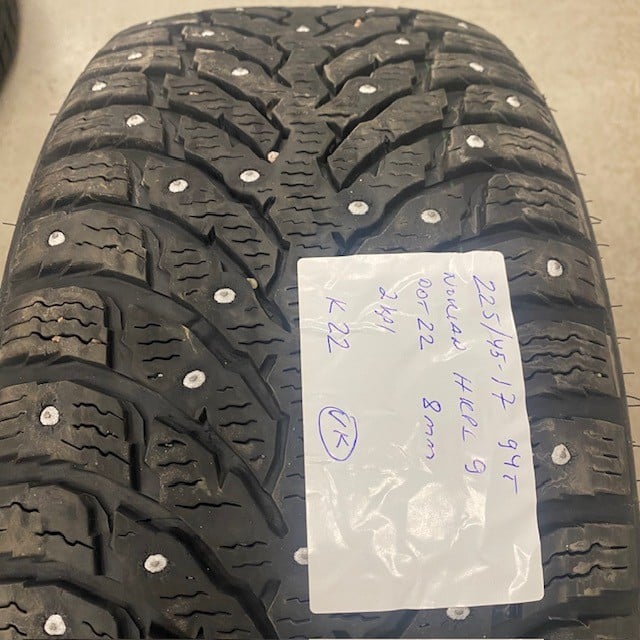 225/45r17 94t nokian hkpl9 käytetty nasta dot22 8mm 2kpl K22