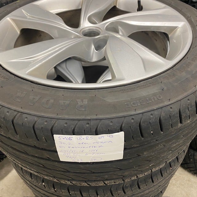 5×115 18×8,5 et49 70,2mm käytetty opel aluvanne + 245/45r18 100y radar kesät n.6-7mm dot22 4kpl k23